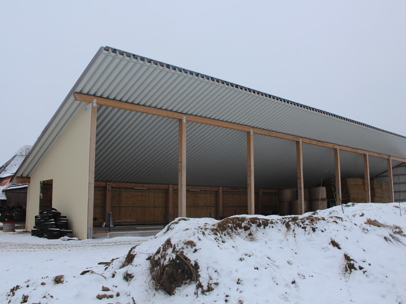 Je nachdem, ob Sie Strohballen oder Futter, Maschinen oder unempfindliche Verbrauchsmaterialien lagern wollen, setzen Sie Wandverkleidungen und Sockelmauern ein oder lassen die Seiten offen.