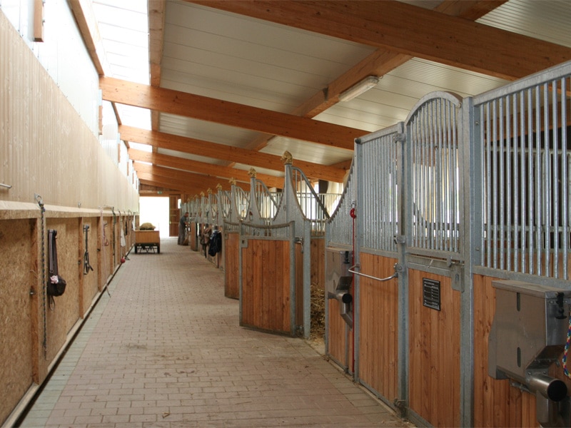Nach Ihren individuellen Wünschen versehen wir Ihre lichtdurchflutete GROHA®-Reithalle mit ein- oder zweireihigen Boxenställen, Paddocks, Reiterstübchen, Sattelkammern, Lagermöglichkeiten und weiteren Funktionsräumen.