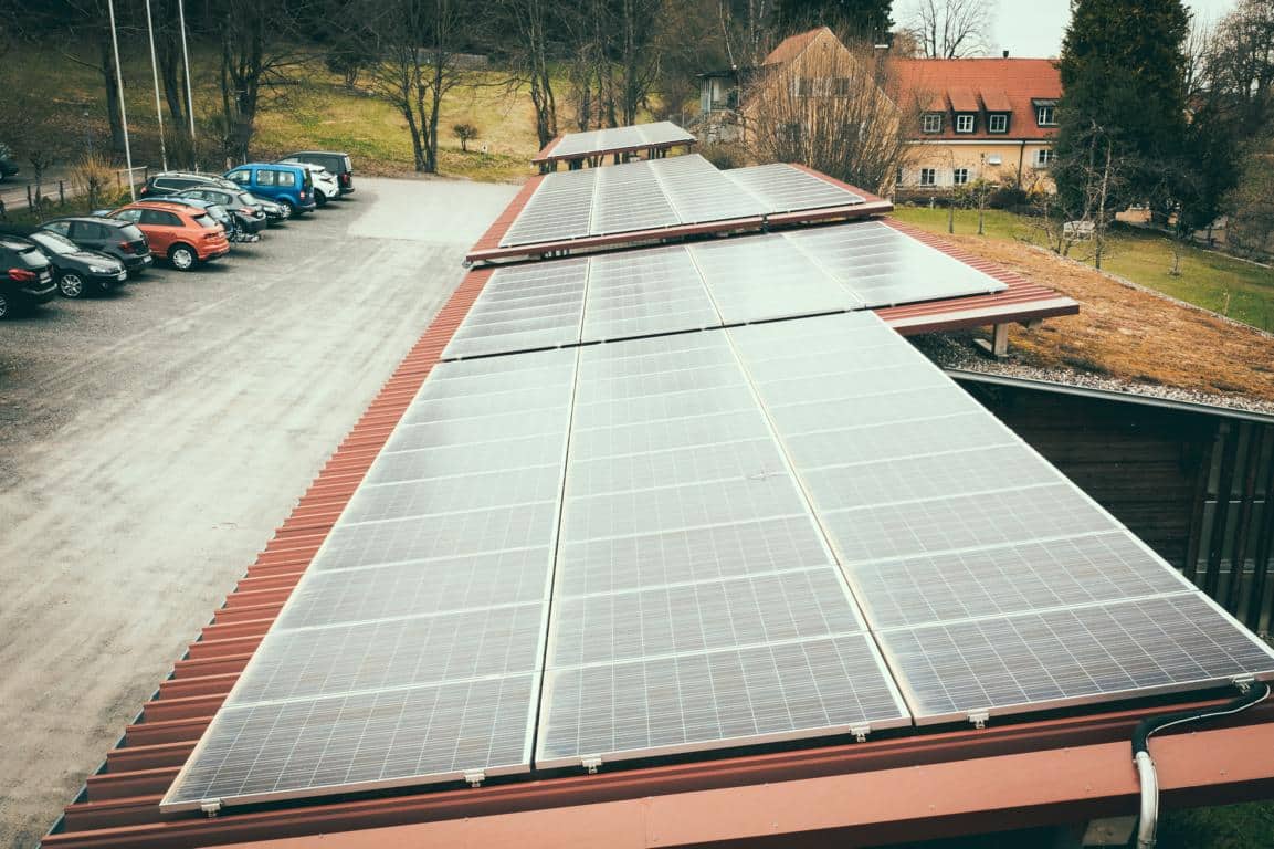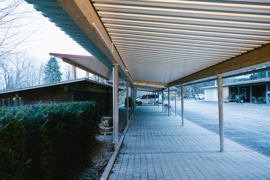 Klassiker mit PV-Modulen: Reihencarport mit Solar-Panels